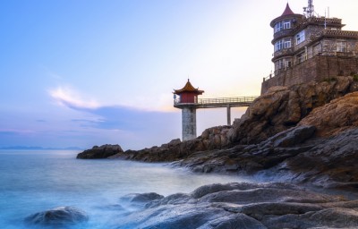 그 안에는 "회란각"이라 불리는 민족특색의 2층 8각루가 세워져 있습니다. 이 회란각의 옆에 다가서면 뒤에 뒤를 이어 밀려드는 세찬 파도를 감상할 수 있습니다.