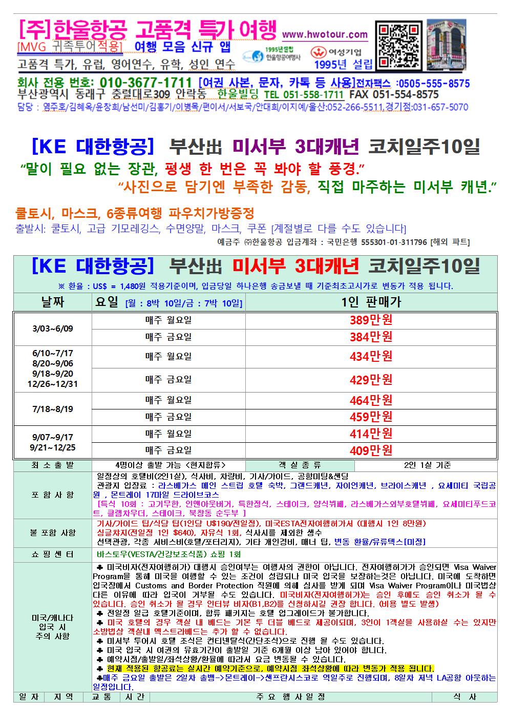 [KE 대한항공] 부산출발 미서부 3대 캐년 완전일주 "사진으로 담기엔 부족한 감동, 직접 마주하는 미서부 캐년"