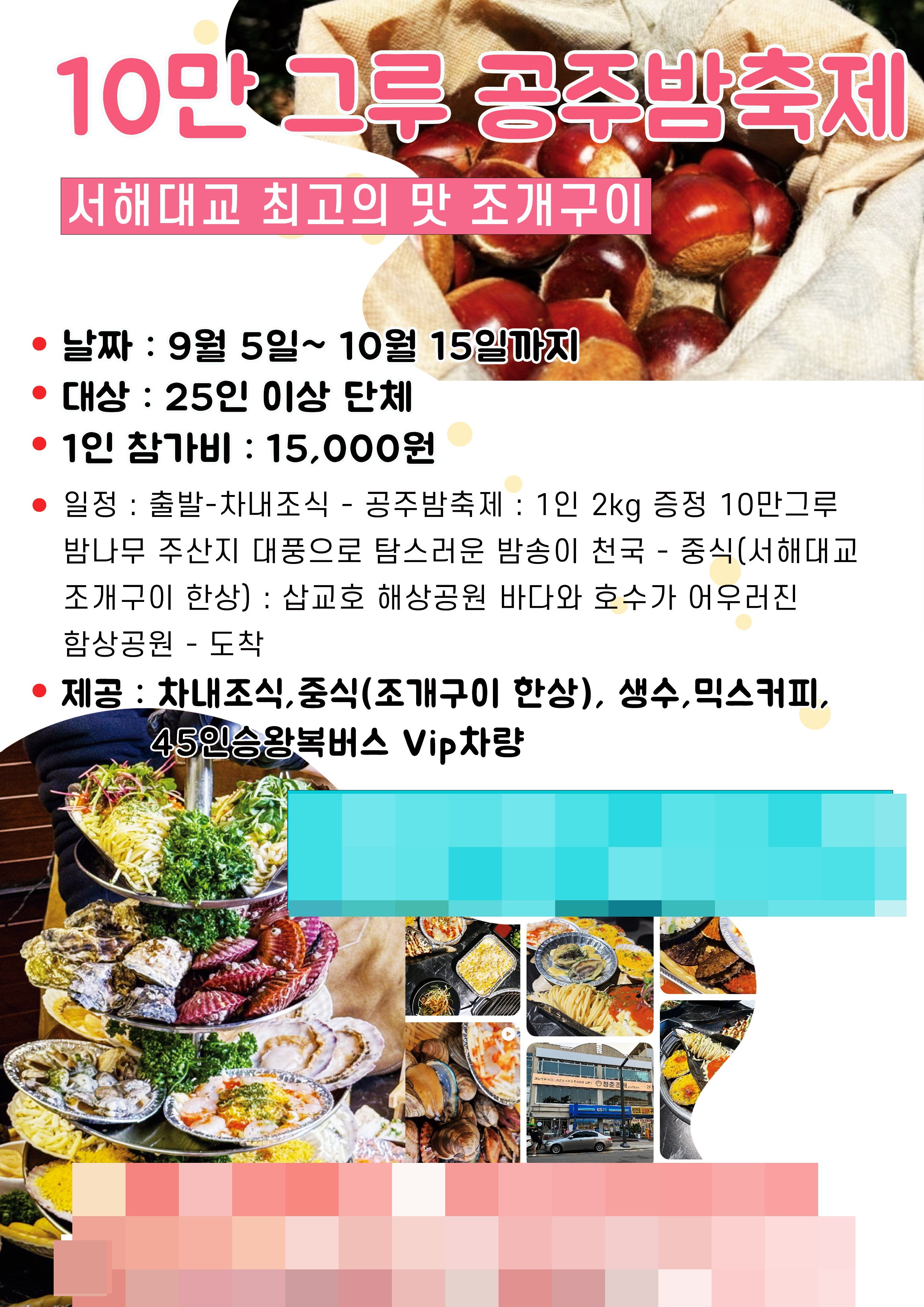 [전국 출발] 당일!!! 공주 밤 축제 & 서해안 조개구이 여행 우리 같이 가을에 향연에 빠져보자