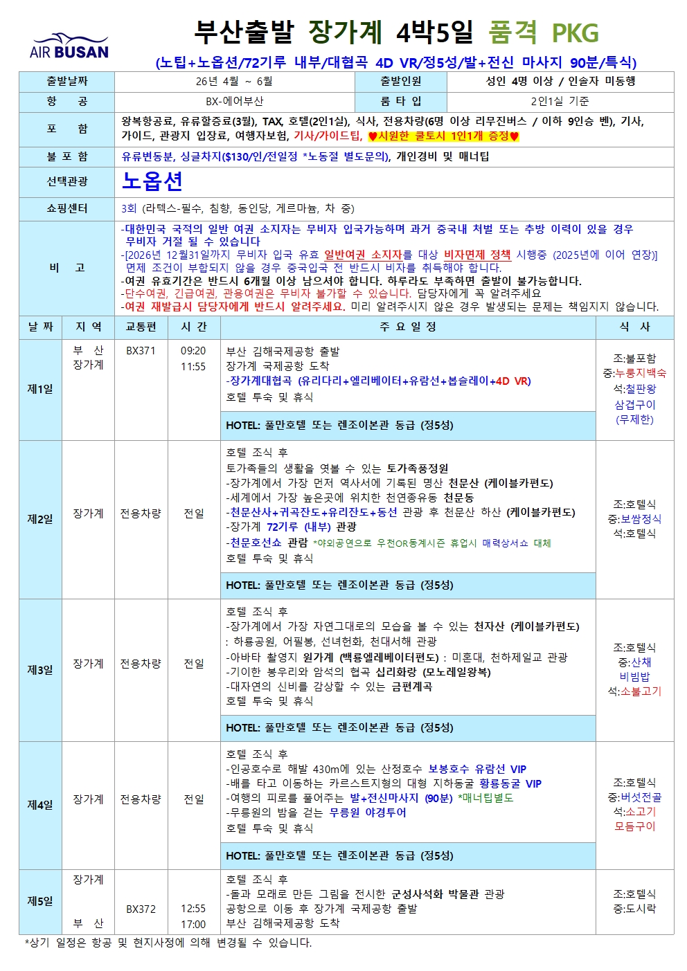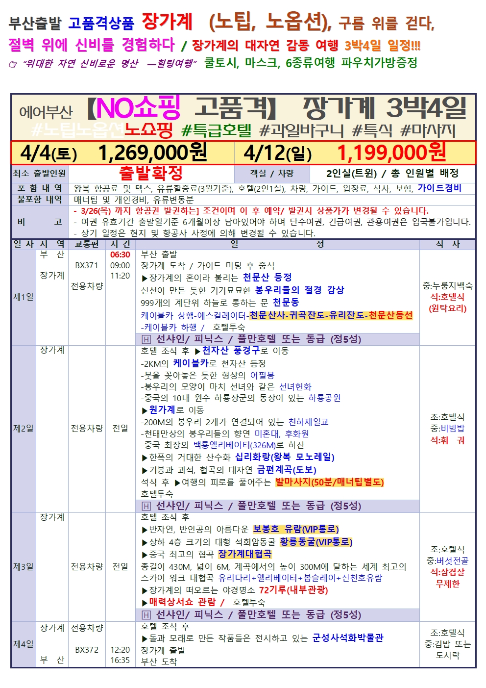 [부산출발] 장가계 대자연의 감동 위대한 절경 모아모아! 4일.5일